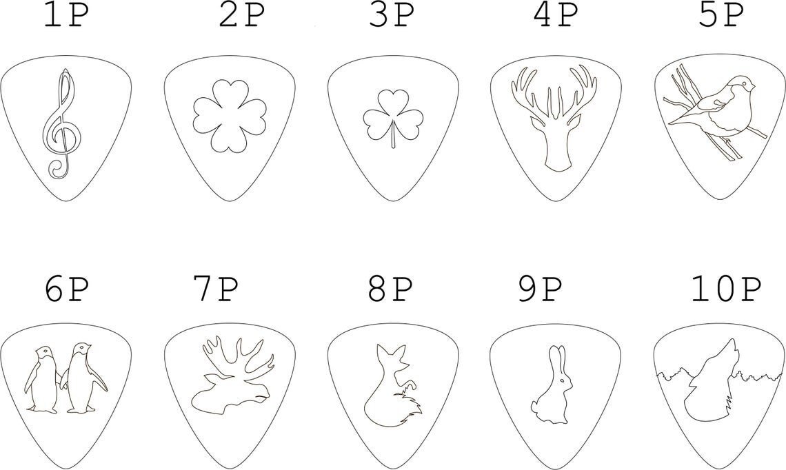 Médiator : 1 po. L x 1,14 po. H x ~ 0,08 po. Épaisseur