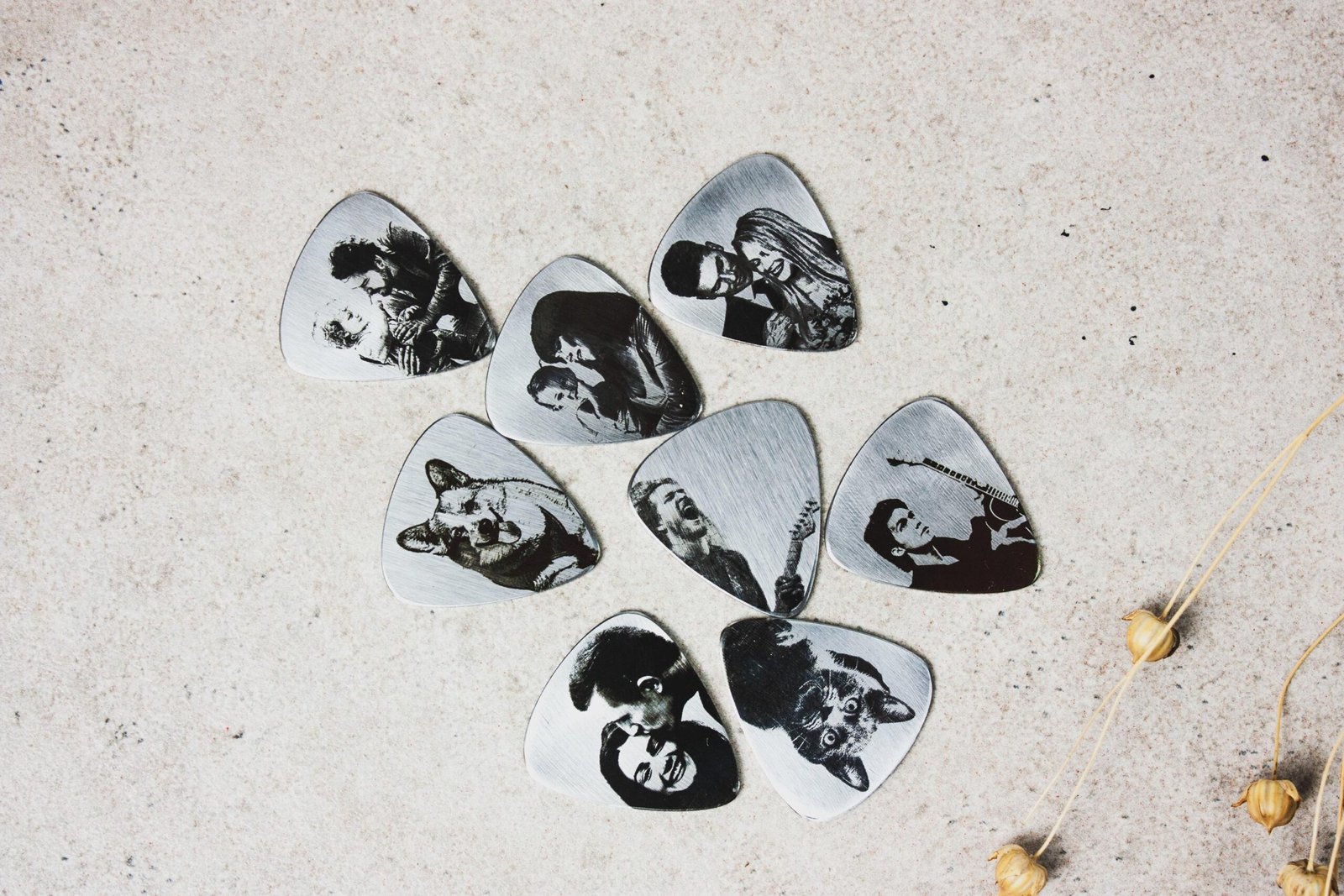 Des piques en métal peuvent également être gravées avec votre photo : envoyez simplement votre image via la messagerie Etsy !